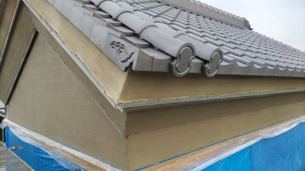 ラス網をはり、軽量モルタルを塗ったあとすぐに土をなめし、そのあとは土ばかりで下地をつくりました。