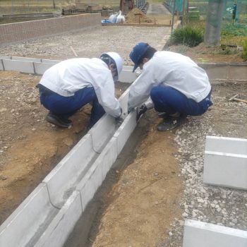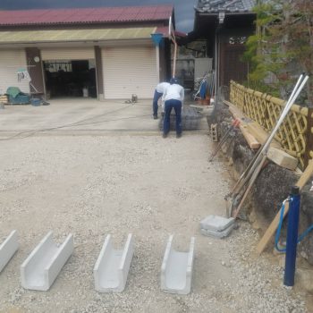 内容はリブブロックつみや、土のすきとり、砕石の整地転圧らU字溝設置などです。