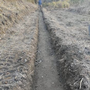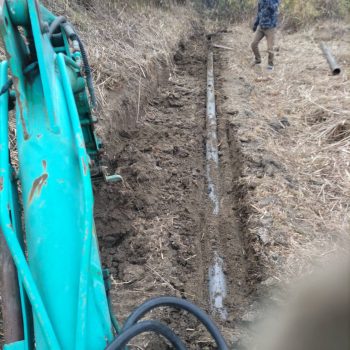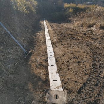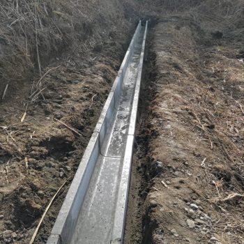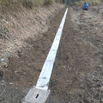 こちらは1月に完成しました工事ですが、地中に埋設してあった用水パイプが頻繁に泥詰まりをおこし、水管理に難儀されてたようで、一旦既存のパイプを引き出して、代わりに6寸幅のU字溝を敷設し、天端をコンクリート蓋で暗渠にするという改善工事をしました。